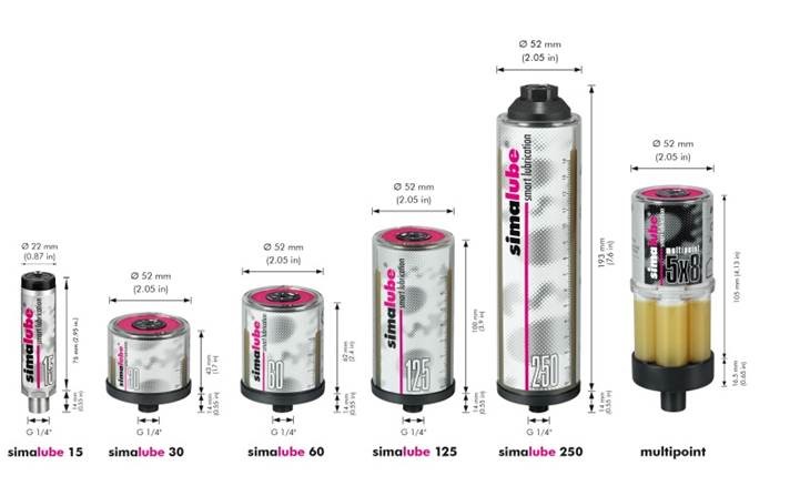 מגרזות SIMALUBE מתוצרת SIMATEC שוויץ, זמינות בחמישה גדלים שונים.