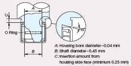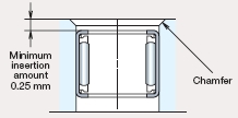 3. אין חובה להשתמש בטבעת תפס או בכתף לצורך קיבוע המיסב. למרות זאת, אם מרכיבים בלחץ את המיסב בתוך בית מיסב המצויד בכתף או בקצה סגור, יש לדאוג כי פני צד המיסב לא יבואו במגע עם הכתף או עם תחתית בית המיסב.